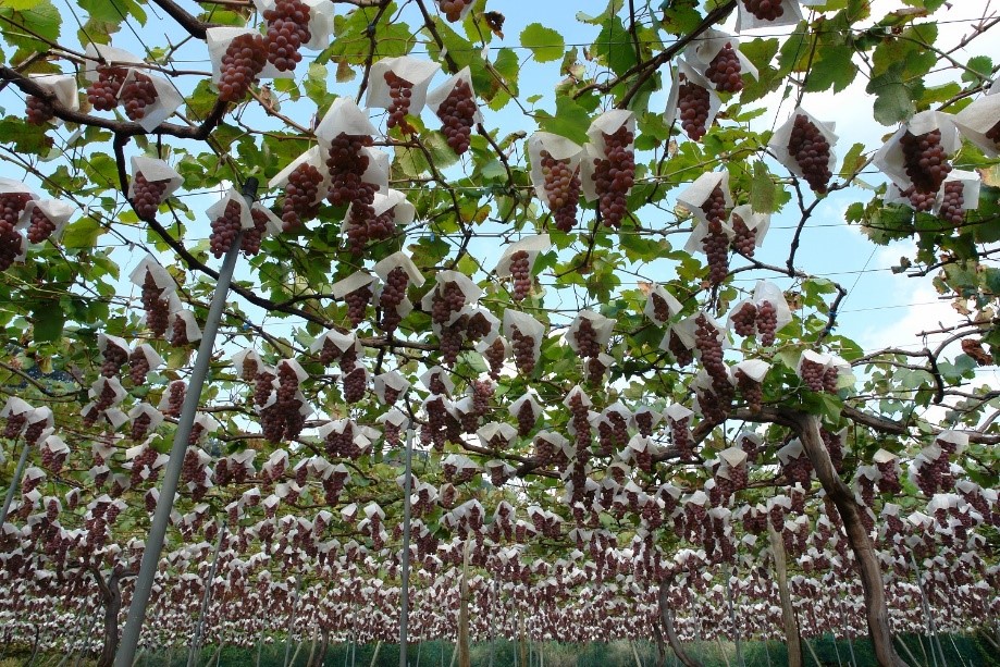 Koshu grapes grown on a pergola trellising.